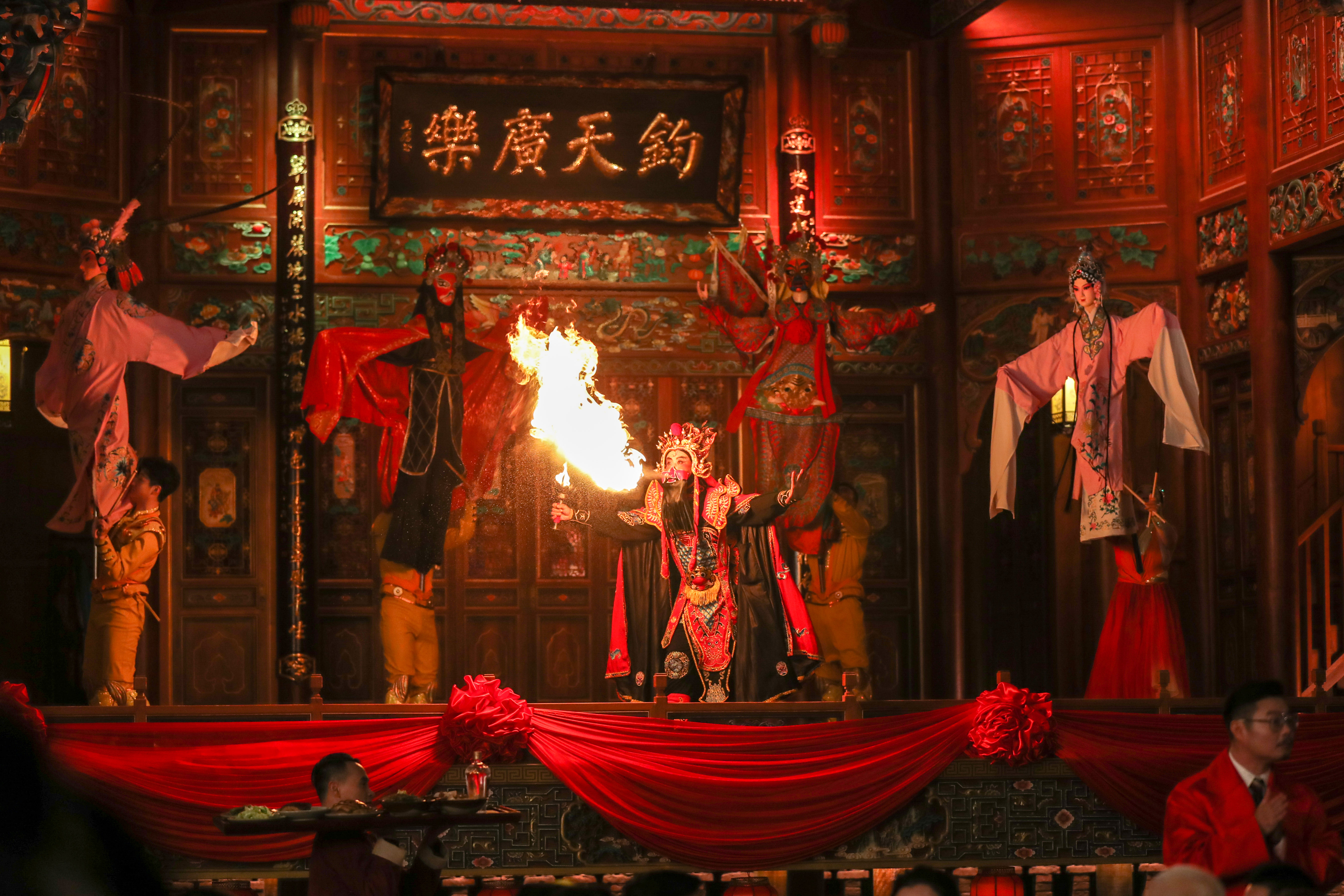 宜宾分会场的开场引子中,一袭红衣劲装的川籍演员此沙率领骑手们从茶马古道疾驰而出,与天上的AI“飞马”一道,穿蜀南竹海,过李庄古镇,在长江大桥上与现代智轨并肩驰骋,从五粮液501白酒文化圣地奔向合江门……